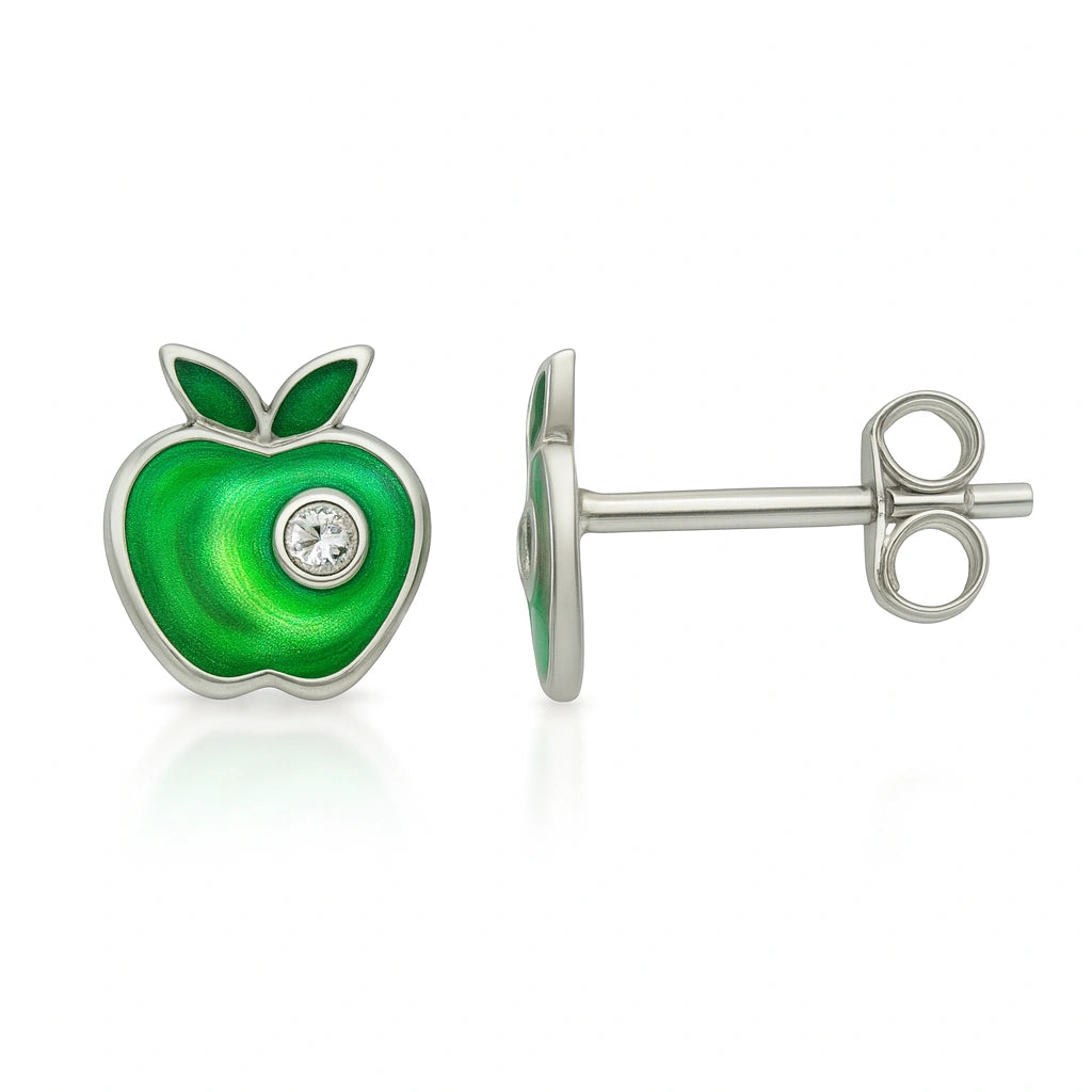 These children's apple earrings are perfect for special occasions, parties, family celebrations, or any time your little one wants to add some sparkle to their outfit. The durable sterling silver construction means they can be treasured for years to come. Also available in bright green for those who prefer a different colour option.