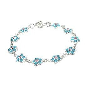 Baby and Children's Bracelets: Sterling Silver, Blue Enameled Flower Bracelets