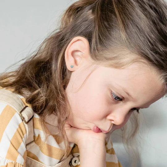 These charming sterling silver earrings, measuring a delicate 5mm, are perfect for little ones from their first birthday through to school age. Featuring clear crystals that catch the light beautifully, they are enhanced by the iridescent glow of abalone hearts in stunning shades of blue, green, and purple. Their elegant yet playful design makes them ideal for both special occasions and everyday wear, adding a touch of sparkle and colour to any outfit. Crafted with care, these earrings offer a safe and stylish choice for your child’s early jewellery collection.