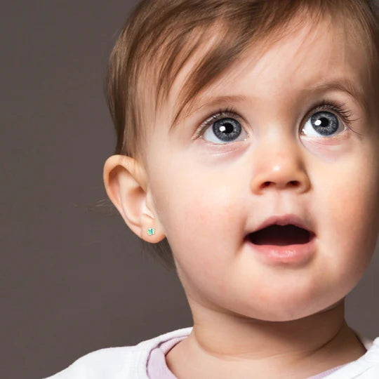 Baby and Children's Earrings: Sterling Silver Iridescent Green Blue Butterflies
