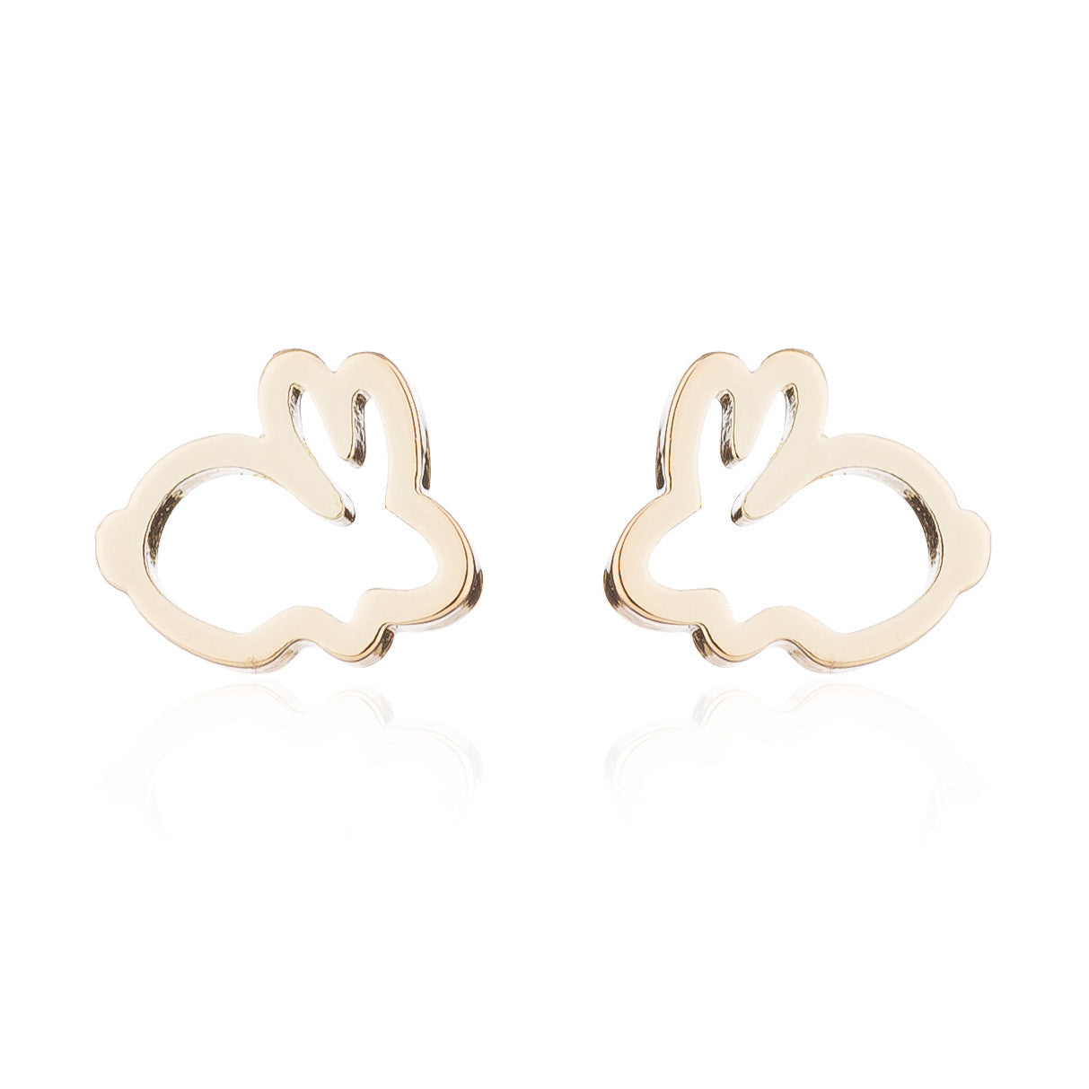 Measuring 6mm x 7mm, these cute little open bunny rabbits for 0 - 6 years, are also available in polished surgical steel, and yellow gold IP.