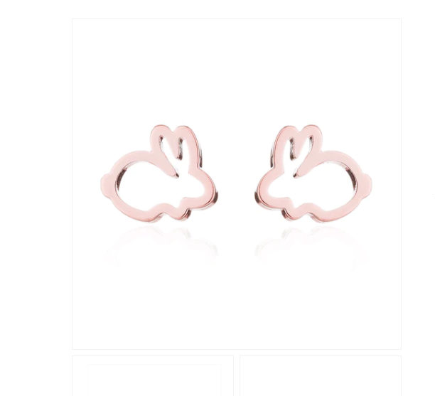 Baby and Children's Earrings: Surgical Steel, Rose Gold IP, Open Bunny Rabbits
