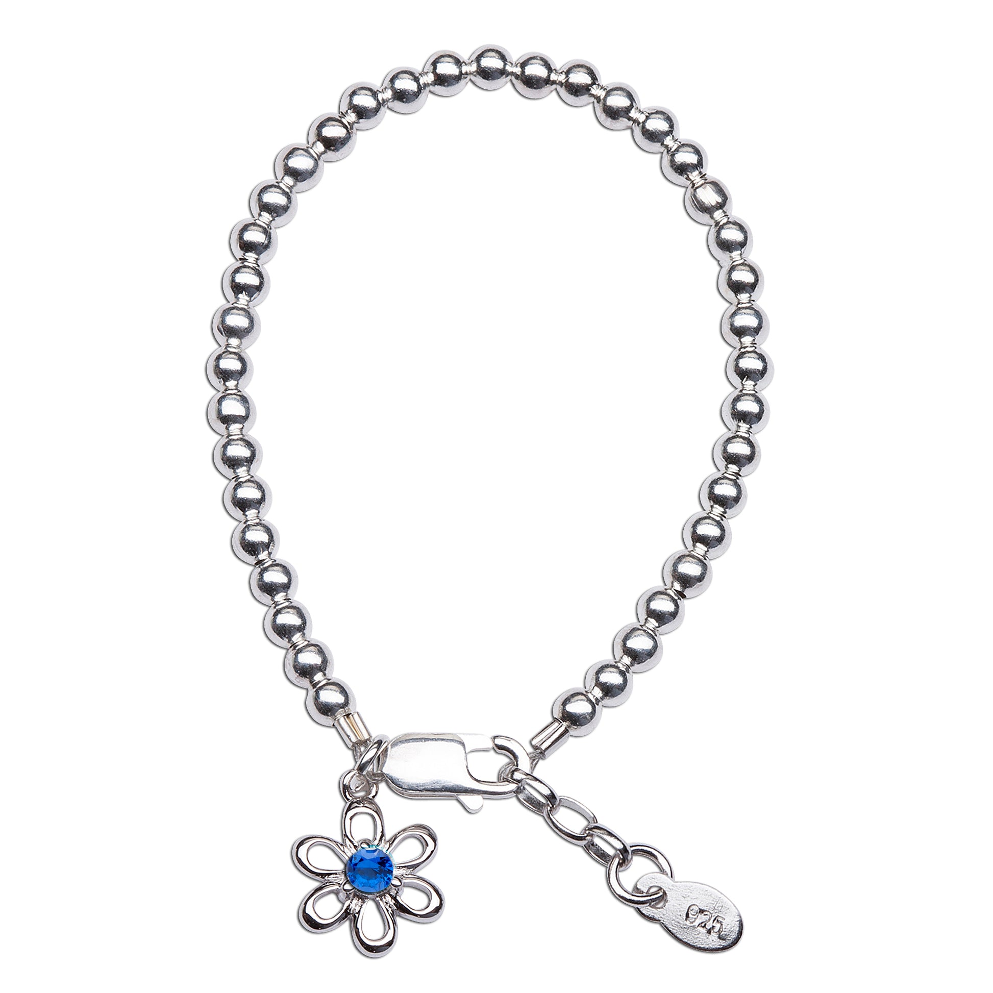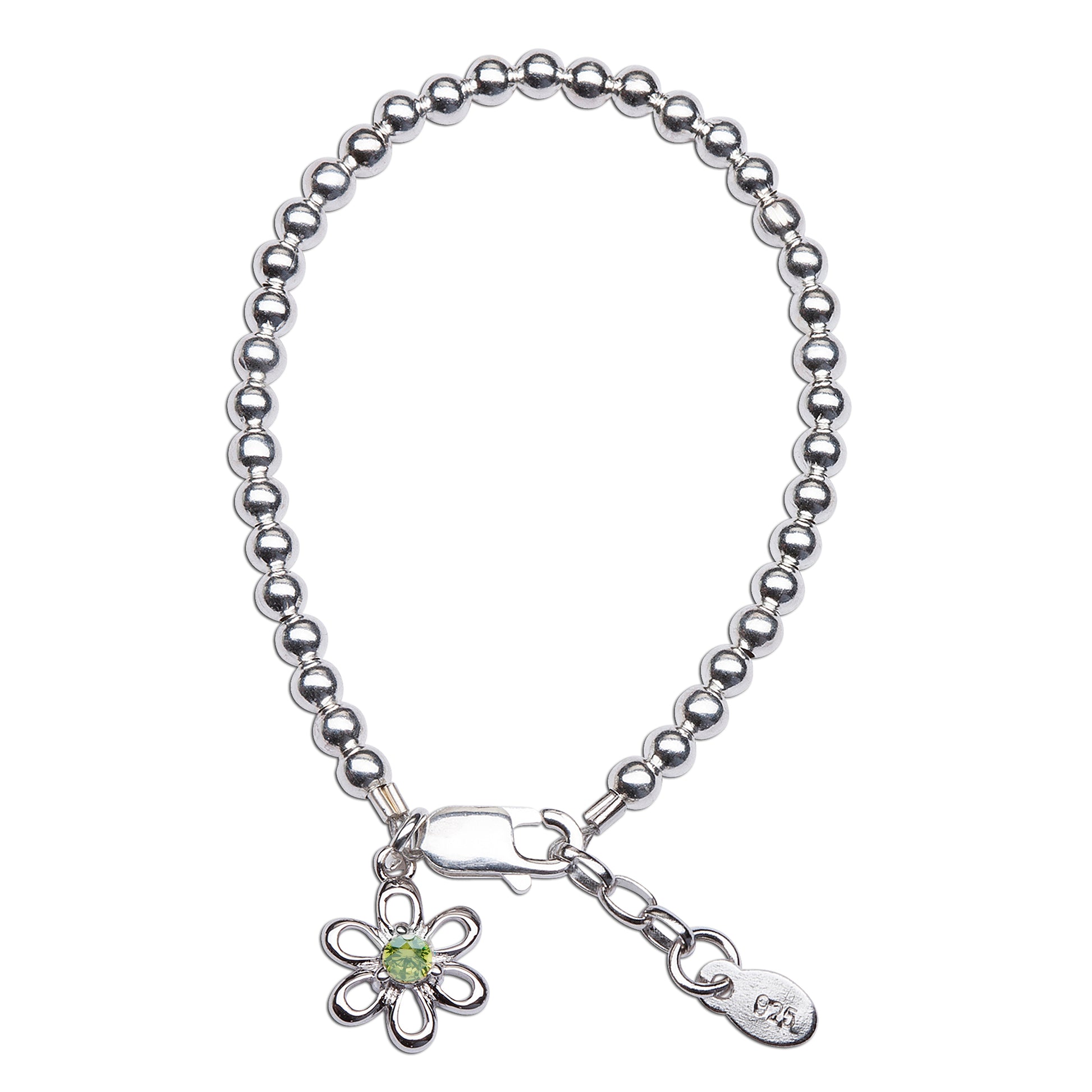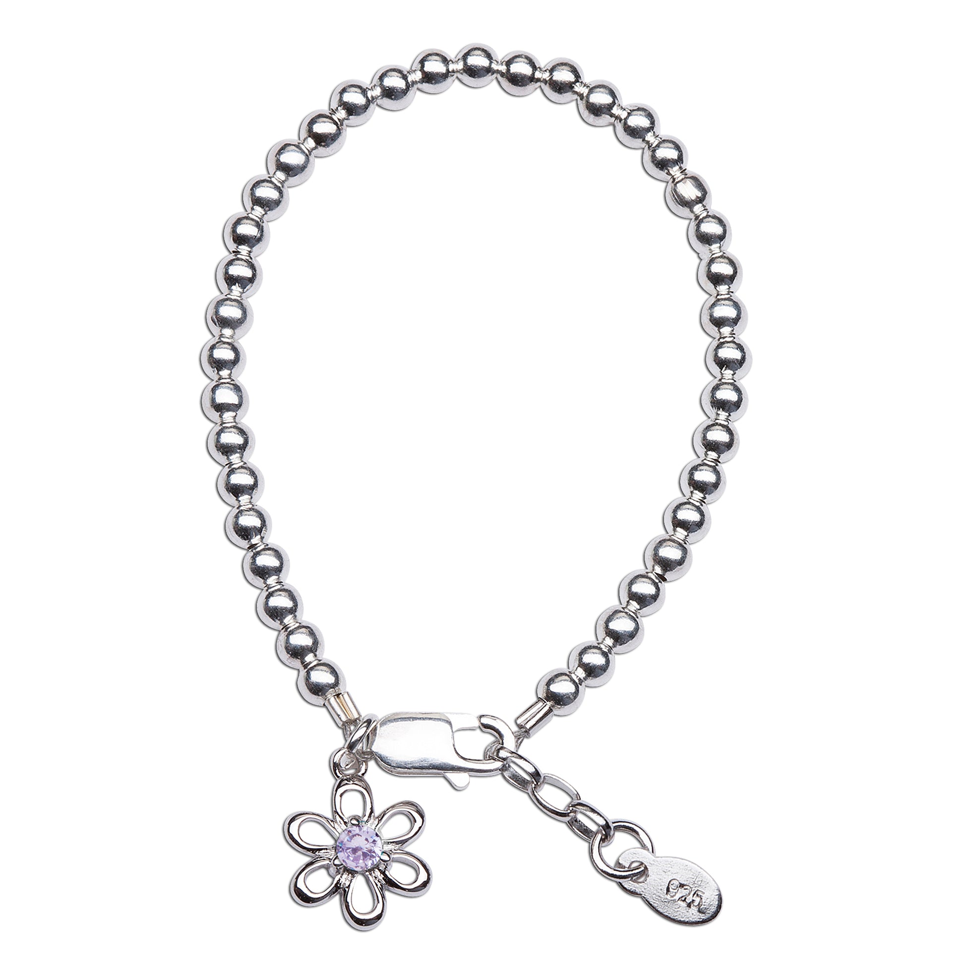Baby Bracelets: Sterling Silver Keepsake Daisy Birthstone Ball Bracelets - Newborn to 18 Months January to December
