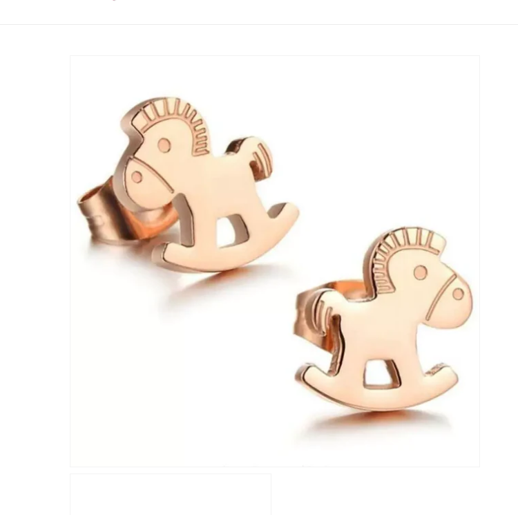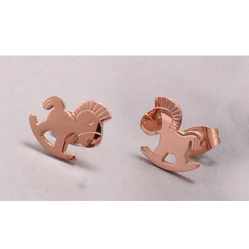 Children's and Teens' Earrings: Steel with Rose Gold IP Rocking Horse Earrings