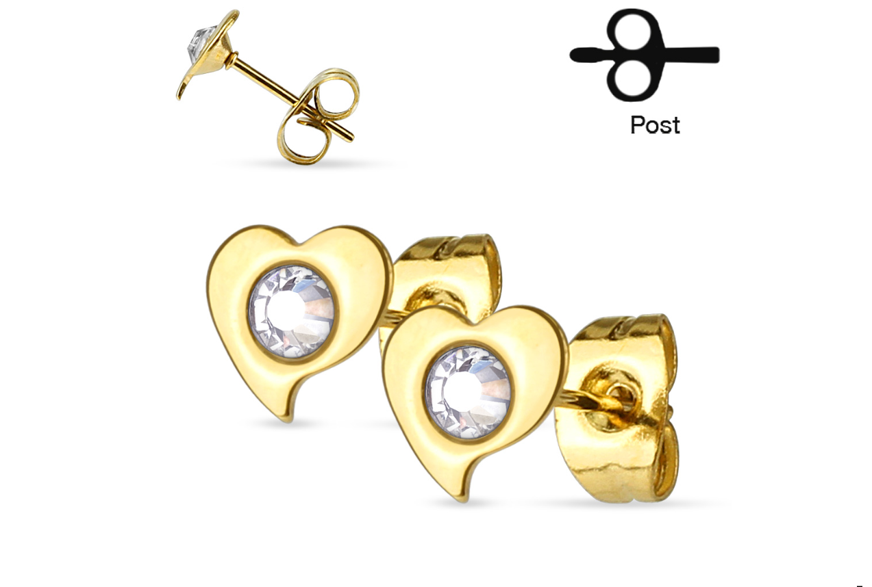 Children's and Teens' Earrings: Surgical Steel, Gold IP Heart/CZ Studs