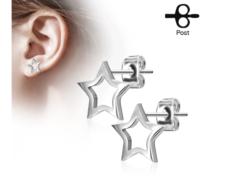 Children's and Teens' Earrings: Surgical Steel Open Stars