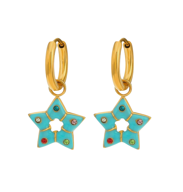 Introducing our Children's and Teens' Earrings, made with high-grade Surgical Steel coated with Gold IP. With a vibrant Bubblegum Colours (Bright Aqua) design, these earrings feature a charming Star Dangle. The perfect accessory to add a pop of colour to any outfit!