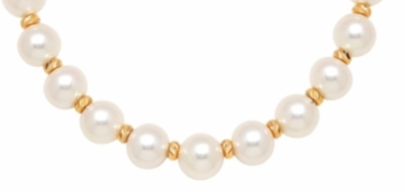 To fit girls from perhaps age 8, 9 or 10, these creamy white, well matched, 6mm freshwater pearls alternate with tiny gold plated ball beads. The shine of the beads and the gleam of the pearls make a very pretty and affordable bracelet she will love.