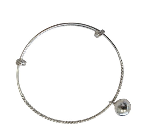 Children's Bracelets: Sterling Silver, Adjustable, Tinkling Bell Charm Bangles