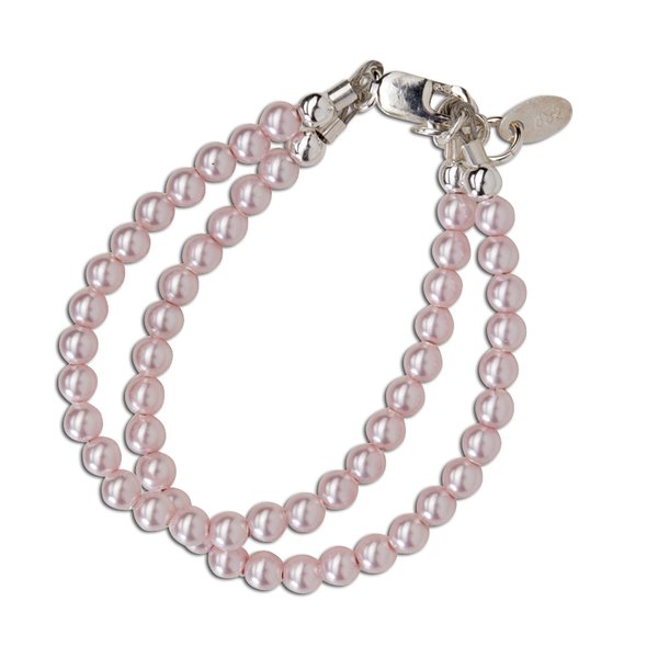 Children's Bracelets: Sterling Silver, Double Strand Pink Swarovski Pearls- Medium