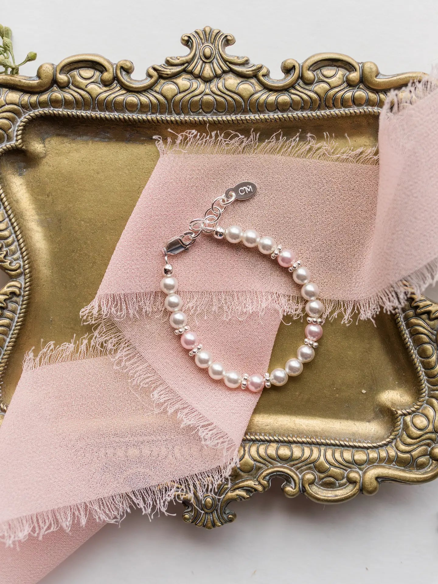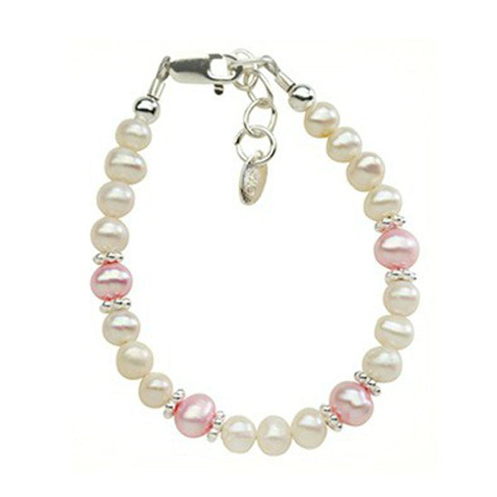 Girls Sterling Silver Freshwater Pearl Bracelet - Pink and White (6 - 10 years)