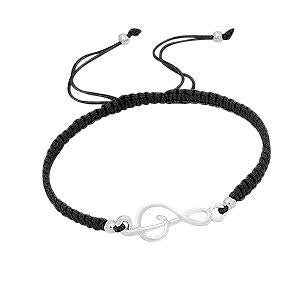 Introducing our Musical Child collection's latest gem - a durable black cotton macrame bracelet featuring a stunning 24mm Treble Clef charm. This adjustable piece grows with your child, fitting wrists from 15cm (6") to 22.5cm (9"), making it the perfect musical accessory from toddler years through adolescence. Crafted in sterling silver, it's the gift that keeps giving as they grow.