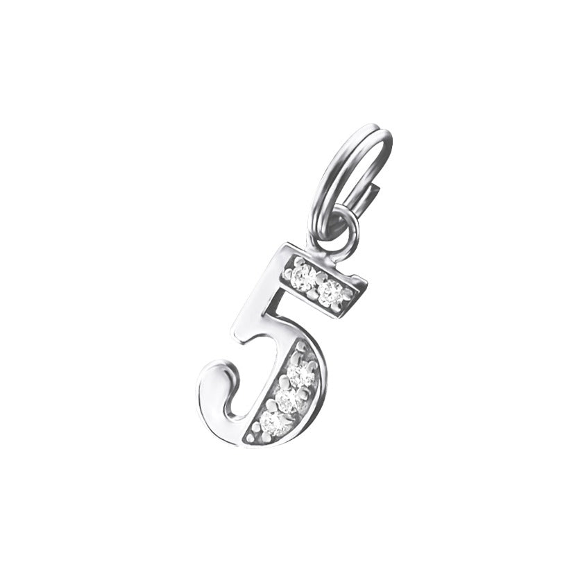 Children's Charms: Sterling Silver, CZ Encrusted "5" Charm with Split Ring