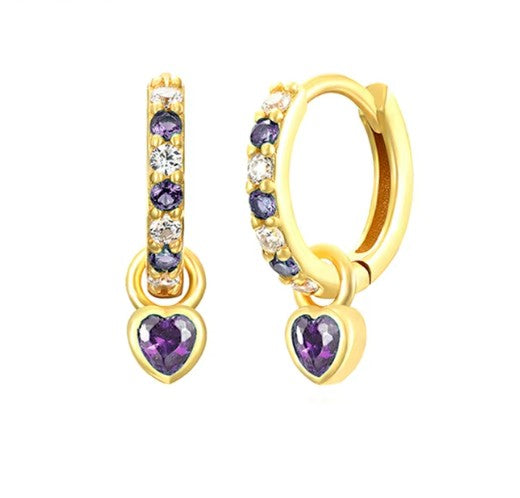 Children's Earrings: 14k Gold over Sterling Silver Pink/Green/White Huggies with Pink Hearts