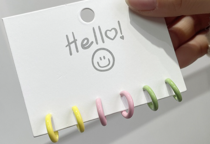 Children's Earrings: Ceramic Half Hoops with Surgical Steel Rods x 3 Pairs