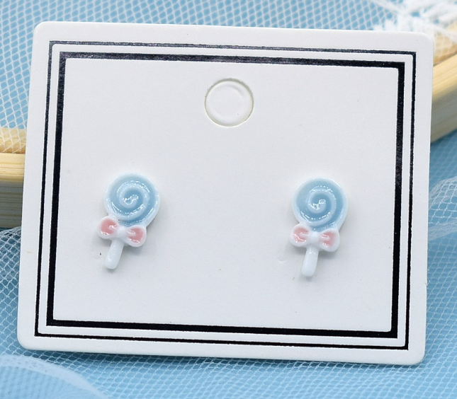 Children's Earrings: Ceramic/Surgical Steel Pink, Blue and White Lollypops