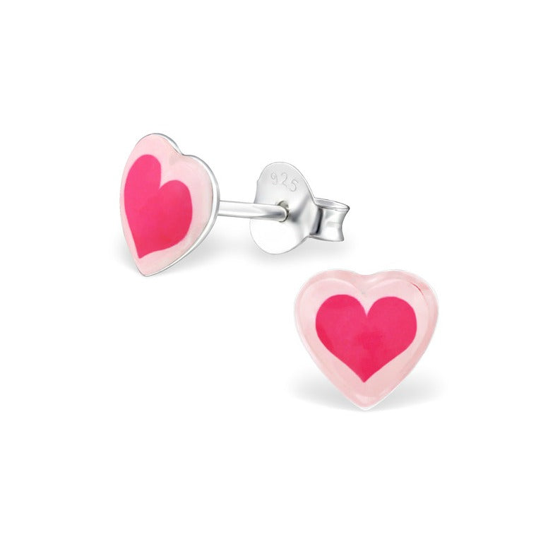 Sterling silver children's earrings from our Bright Hearts collection. Measuring 7mm x 7mm, they feature bright bright pink hearts on kids' heart earrings.Want two pairs? Purchase two pairs and enjoy our Sister Special and get 10% off both pairs.