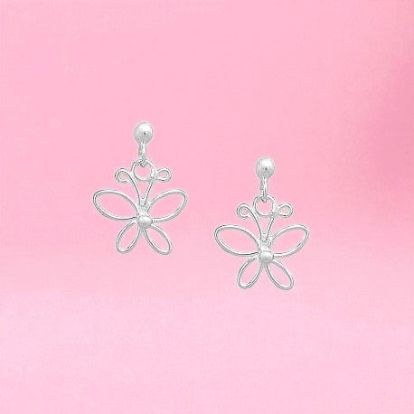 Children's Earrings: Sterling silver Butterfly Dangle Stud Earrings
