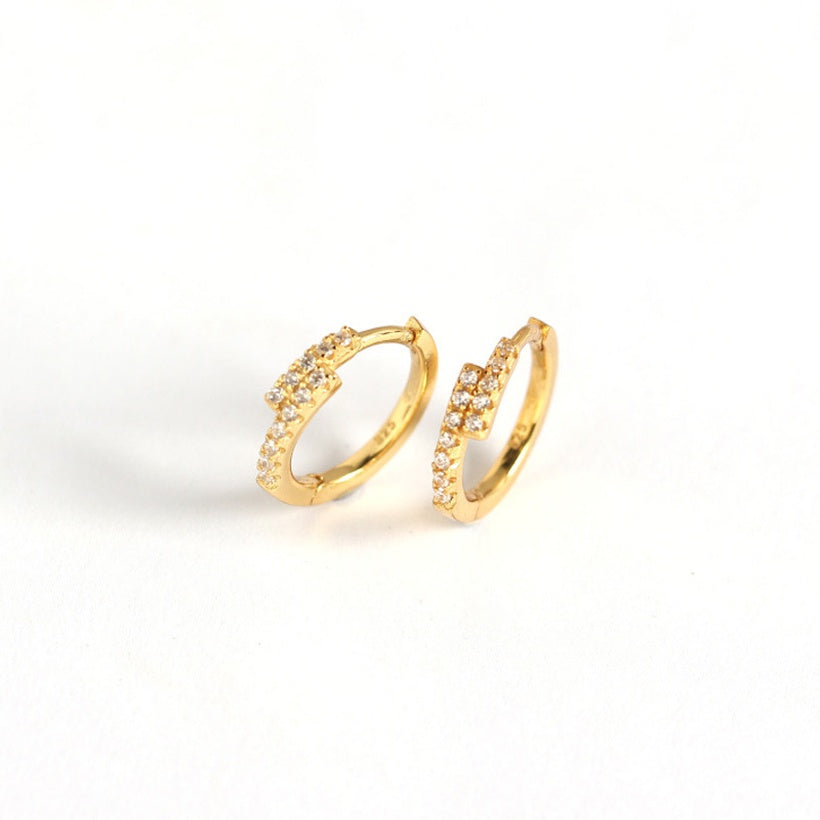 Children's Earrings: Sterling Silver Cross-Over CZ Huggie Hoops