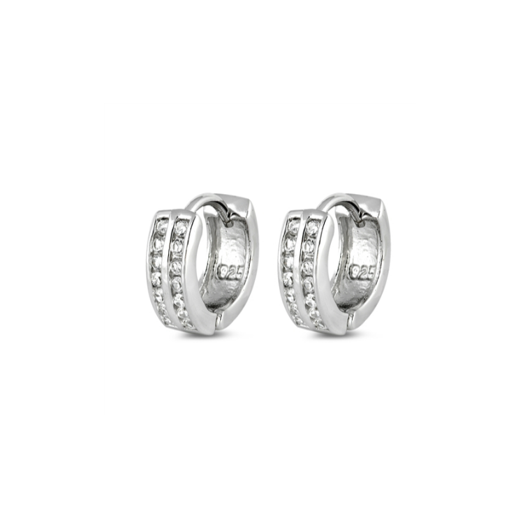 Children's Earrings: Sterling Silver, Double Row CZ Huggies