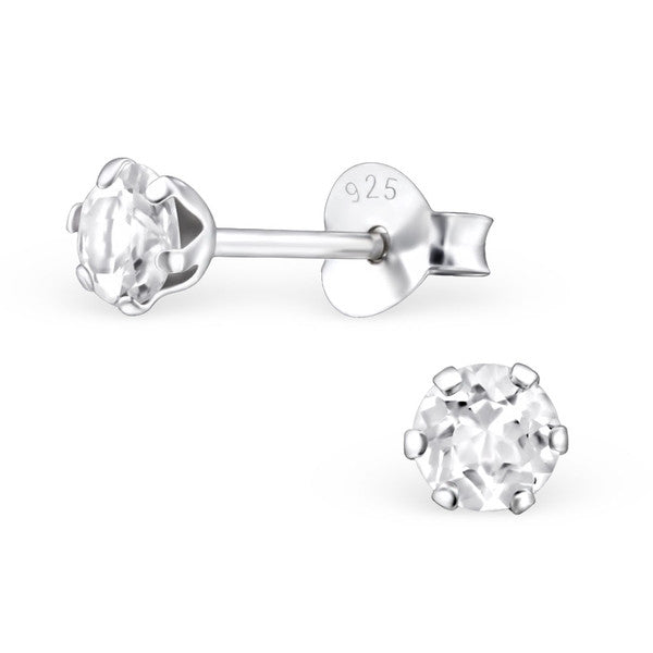 Sterling silver, 5mm round, genuine white topaz earrings for older girls and teens, with push on backs.
