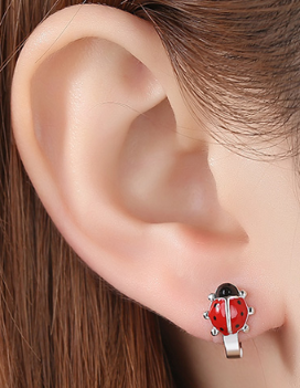 Children's Earrings: Sterling Silver Ladybug Huggies