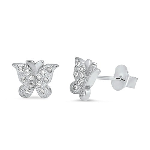 Children's Earrings: Sterling Silver Micropaved CZ Butterfly Earrings