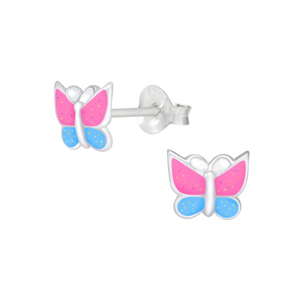 Children's Earrings: Sterling Silver Pink/Blue Glittery Butterflies with Push Backs