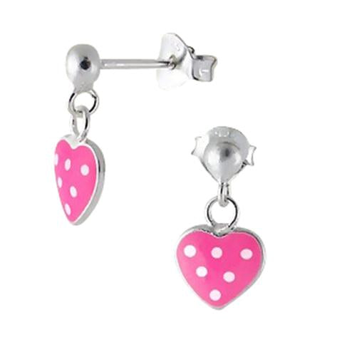 Baby and Children's Earrings: Sterling Silver Pink with White Dots Heart Earrings