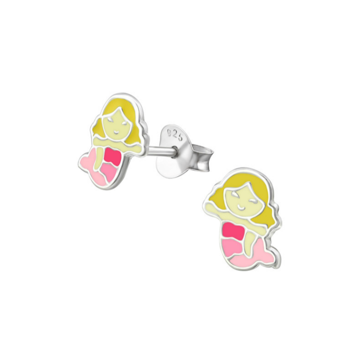 Children's Earrings: Sterling Silver Pink and Yellow Mermaids