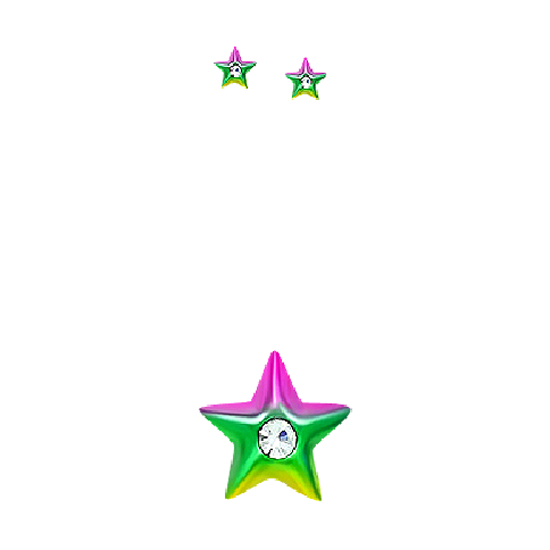 Children's Earrings: Sterling Silver Stars with Central CZ in Green/Yellow and Pink