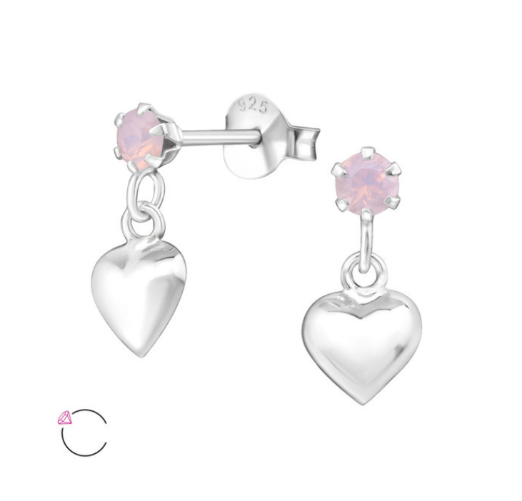 Children's Earrings: Sterling Silver La Crystale Rose Water Opal with Dangle Puffy Hearts