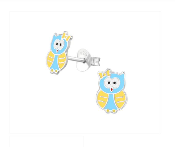 Children's Earrings: Sterling Silver Yellow and Blue Owls