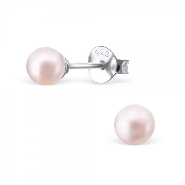 Children's Earrings: Sterling Silver Pinky/Apricot Pearl Earrings 4mm