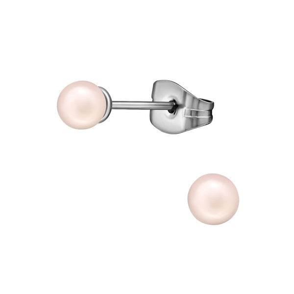 For those with sensitive skin, these sterling silver children's pearl earrings are the answer. 4mm faux pinky/apricot pearls, perfect for everyday wear, school, special occasions. Also available in surgical steel with pink or white pearls.