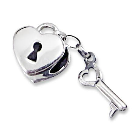 Children's European Beads: Sterling Silver Heart Lock and Key Beads