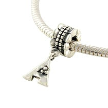 Children's European Beads: Sterling Silver Spacer with Dangle Initial A