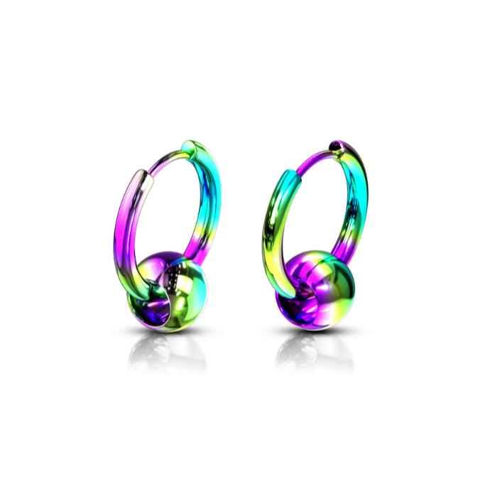 Children's, Teens' and Mothers' Earrings: Anodised, Rainbow Surgical Steel Hoops with Floating Ball