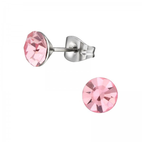 Children's, Teens' and Mothers' Earrings: Surgical Steel Pink CZ Studs 6mm
