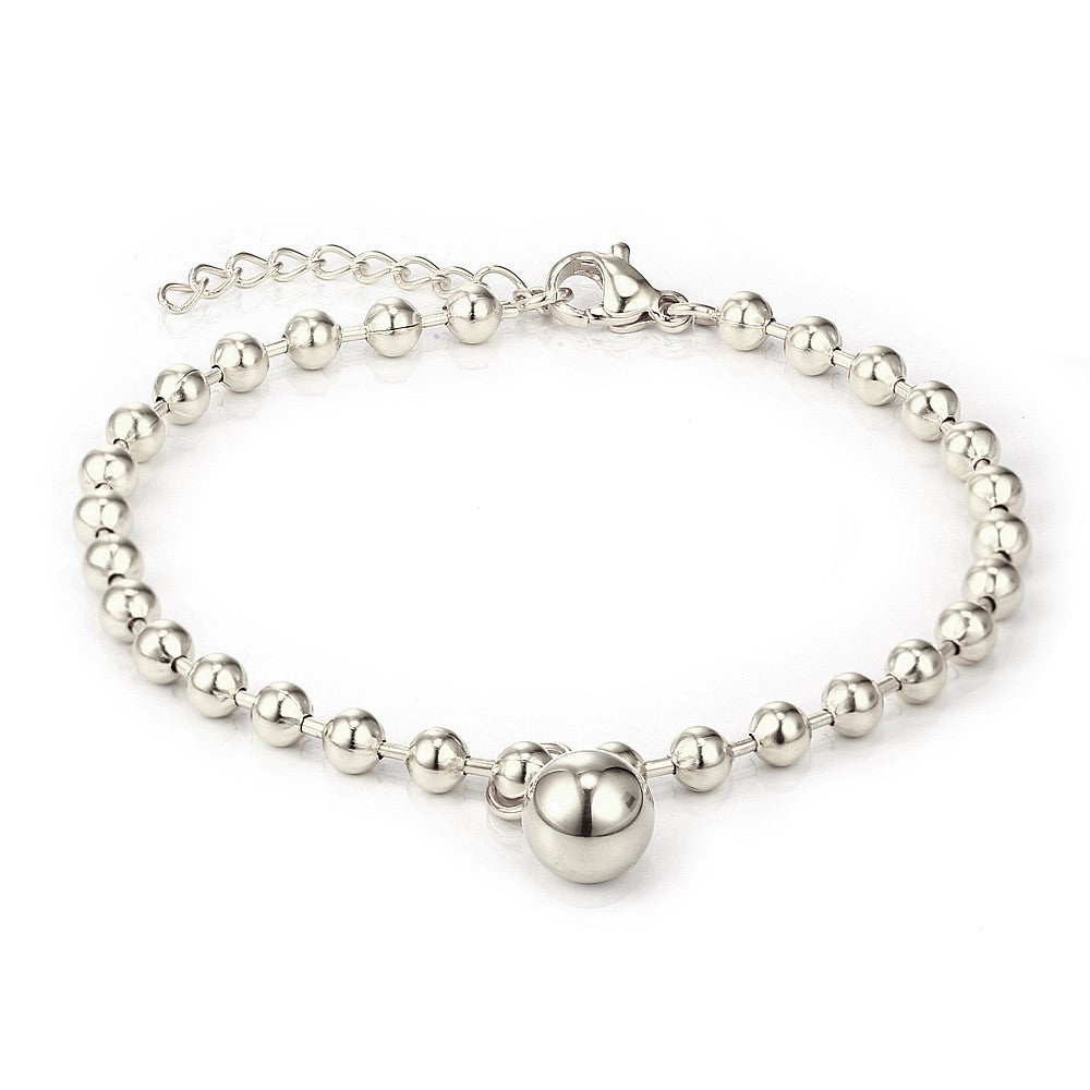 Measuring 16cm long with a 2cm extension for growth, this bracelet would suit perhaps ages 8 - teens. Featuring a ball charm, this simple bracelet would be a perfect everyday-wear bracelet in hypoallergenic surgical steel. Also available in plain surgical steel.