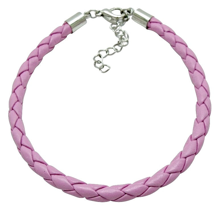 Pale pink woven leather bracelets measuring 19cm long, suitable for older girls, teenagers and adults. These bracelets also have a 4cm extension. They are slightly chunky with a width of 4mm. Both our lobster claw charms and our European style beads look great on these simple bracelets. Check out our charms and beads categories. Want two pink chunky bracelets? Purchase two and enjoy our Sisters Special and get 10% off both bracelets.